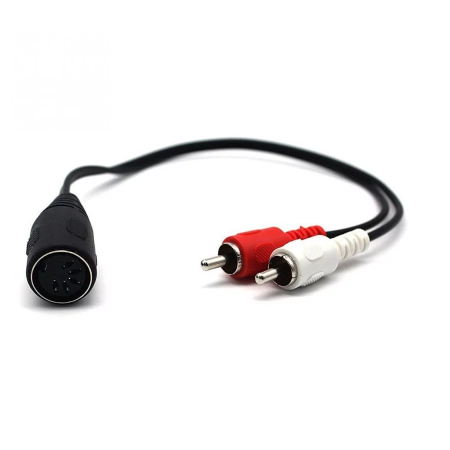 Met deze 2x tulp naar 5P DIN verloopkabel is het mogelijk om een toestel met een DIN kabel aan te sluiten op een toestel met tulp connectors.
